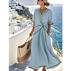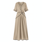 The gently cinched waist and flowing skirt create a smooth, feminine silhouette that flatters every shape — never tight, never clingy. Subtle design details, like the refined knot and soft neckline, give Layla™ her quiet charm.