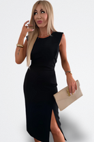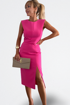 Elegant summer look – The combination of a fitted cut and leg slit is both feminine and powerful
