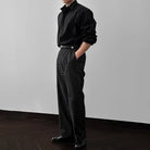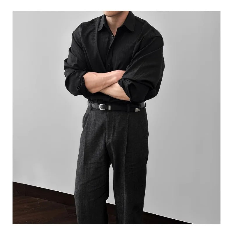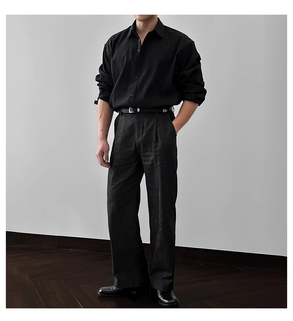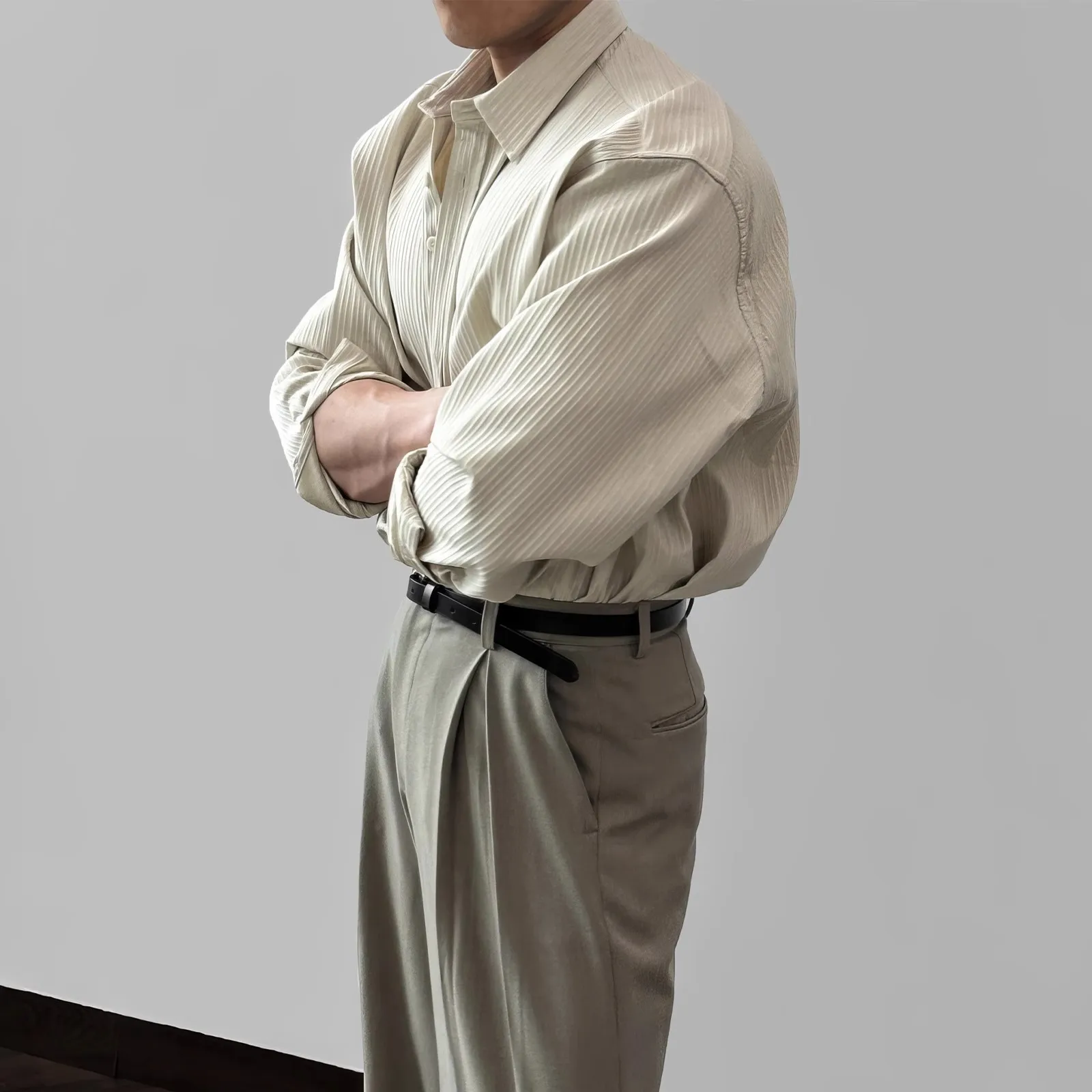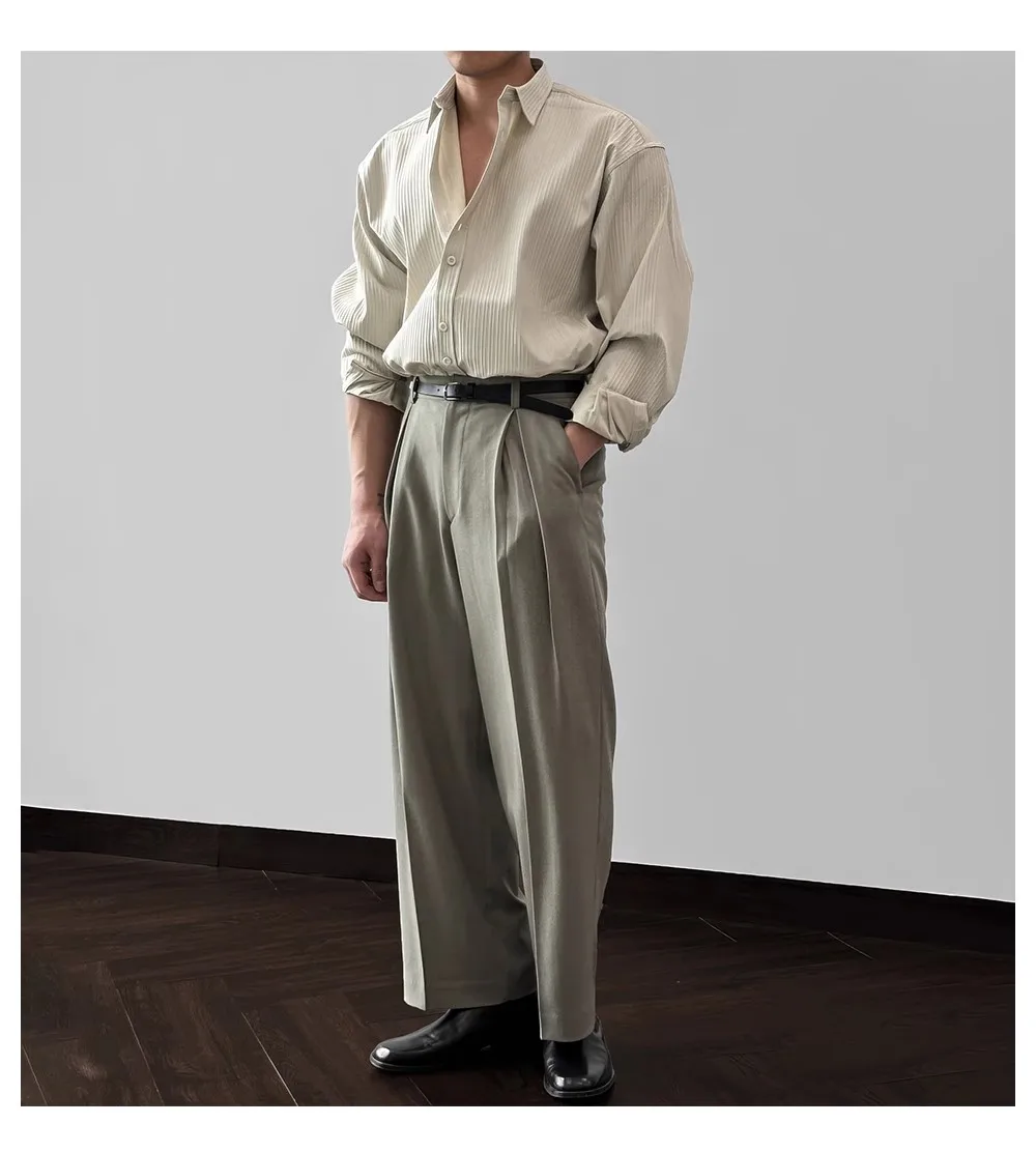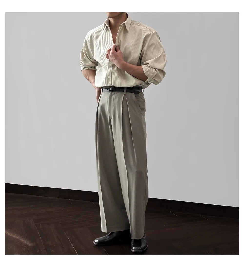 Spring Autumn Long-sleeved Shirts for Men American Fashion Vertical Stripe Texture Solid Color Loose Iron-free Tops